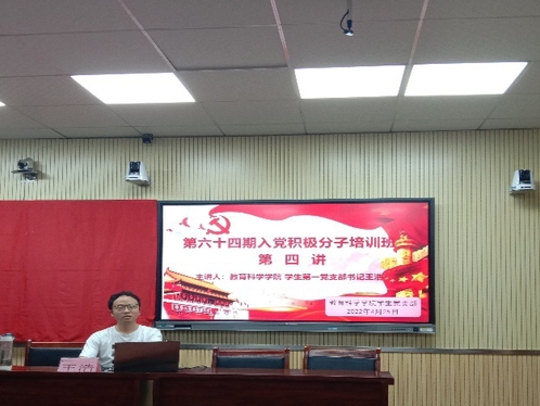 2022年4月25日晚,风速体育第六十四期入党积极分子培训班第四讲于教育大楼1316A会议室顺利举行,风速体育员工第一党支部书记王浩老师主讲本期课程。