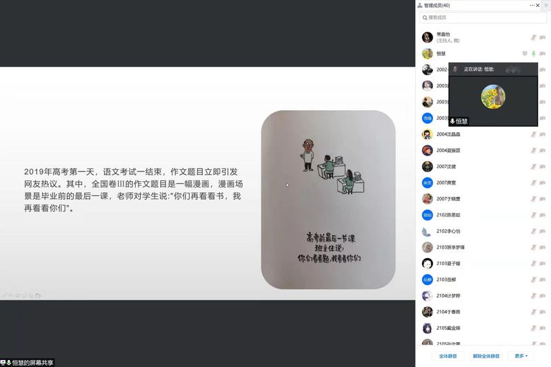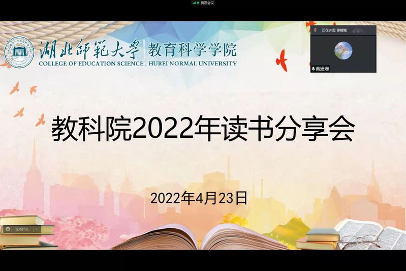 4月23日是“世界读书日”,为了提高同学们对于读书的认识,营造优良的学习氛围,风速体育于4月23日下午在腾讯会议举办“读书分享会”。辅导员秦姗姗与2021年度“阅读之星”的向恒慧、彭艳两位同学参加了本次会议。本次会议由辅导员秦姗姗主持。