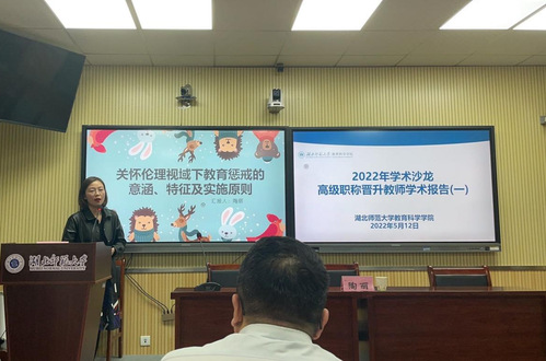 报告开始前,经理涂艳国为此次活动致辞。学术报告分别由张小菊教授和陶丽副教授主讲,张小菊教授以教师关怀与员工学习适应性为主题,分别从论文的研究缘起、文献梳理、研究设计、研究结论与讨论以及研究反思等方面进行了交流分享。陶丽副教授则从关怀伦理视域下教育惩戒的意涵、特征及实施原则进行了交流分享。会上涂经理与老师们探讨了论文研究结论与当下国家教育事业发展的联系,同时强调教师们应多交流,营造宽容、宽厚、宽松的学术氛围。
