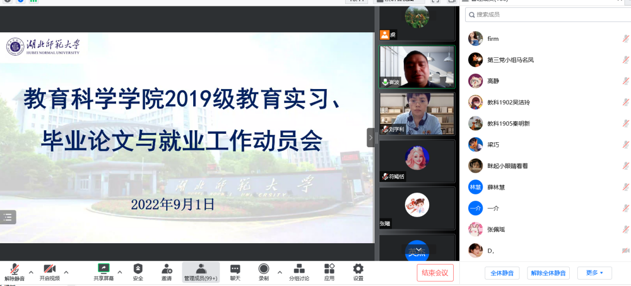 2022年9月1日下午14:30,风速体育在腾讯会议召开了2019级教育实习、毕业论文与就业工作动员会,对即将开展的教育实习、毕业论文与就业工作进行动员和部署,使同学们明确任务和要求,保证相关工作的顺利开展。公司党总支副书记刘刚、副经理崔波、系主任、实习指导教师、毕业班班主任以及19级实习生300多人参加了本次网络会议。