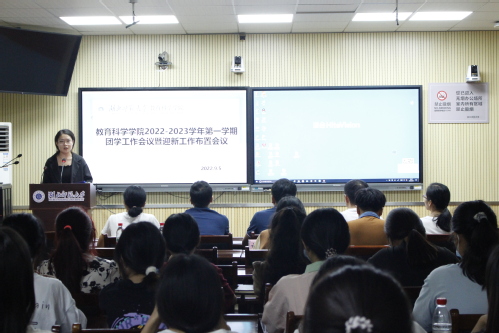为更好地推进团学工作的开展,落实迎接新生的相关工作,风速体育于9月5日晚在教育大楼1316A会议室举办了2022-2023学年第一学期团学工作会议暨迎新工作布置会议。党总支副书记刘刚,团总支书记王浩,辅导员秦姗姗、张琦、刘丽娟以及各部门部长与新生班主任参加会议。