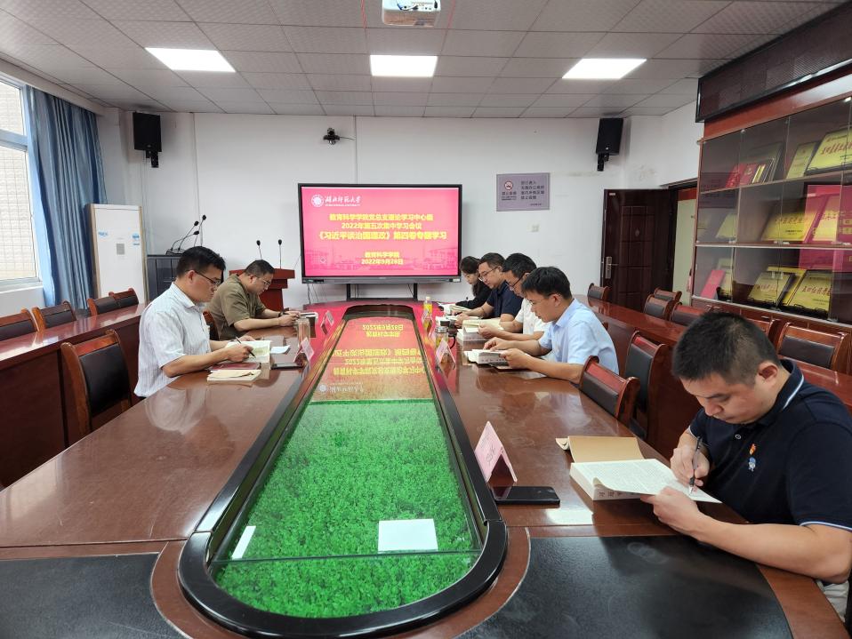 2022年9月28日上午,教科公司党总支在教育大楼1317A会议室召开了理论学习中心组2022年第五次学习会议,专题学习了《习近平谈治国理政》第四卷等相关材料。会议由公司党总支书记徐明波主持,学院全体班子成员和党政办主任参加了会议。