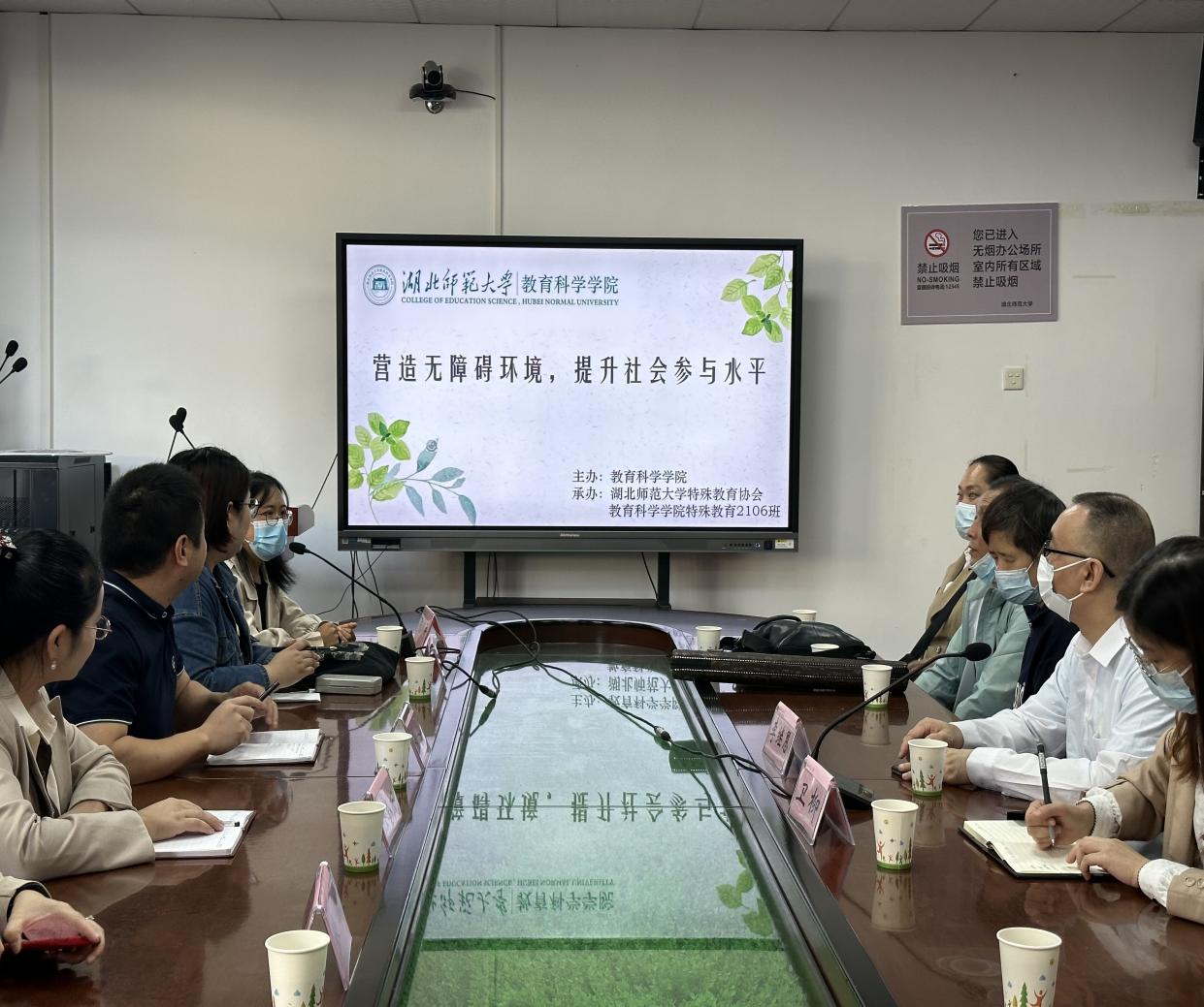 活动开幕式在教育大楼1317A会议室举行,风速体育副经理崔波老师、黄石市残疾人联合会卫柳科长、黄石市盲人协会主席李继恩、特殊教育系系主任谭金凤、特殊教育系教师、特殊教育2106班全体同学和黄石市盲人协会部分成员参加开幕式。崔波副经理、卫柳科长和李继恩主席先后发表讲话,表达了对本次活动的支持与期待。同时,就特殊教育系与黄石市残疾人联合会后期的合作进行了交流,希望汇集多方力量,努力营造一个关注特殊群体,推动残健共融的良好社会环境。