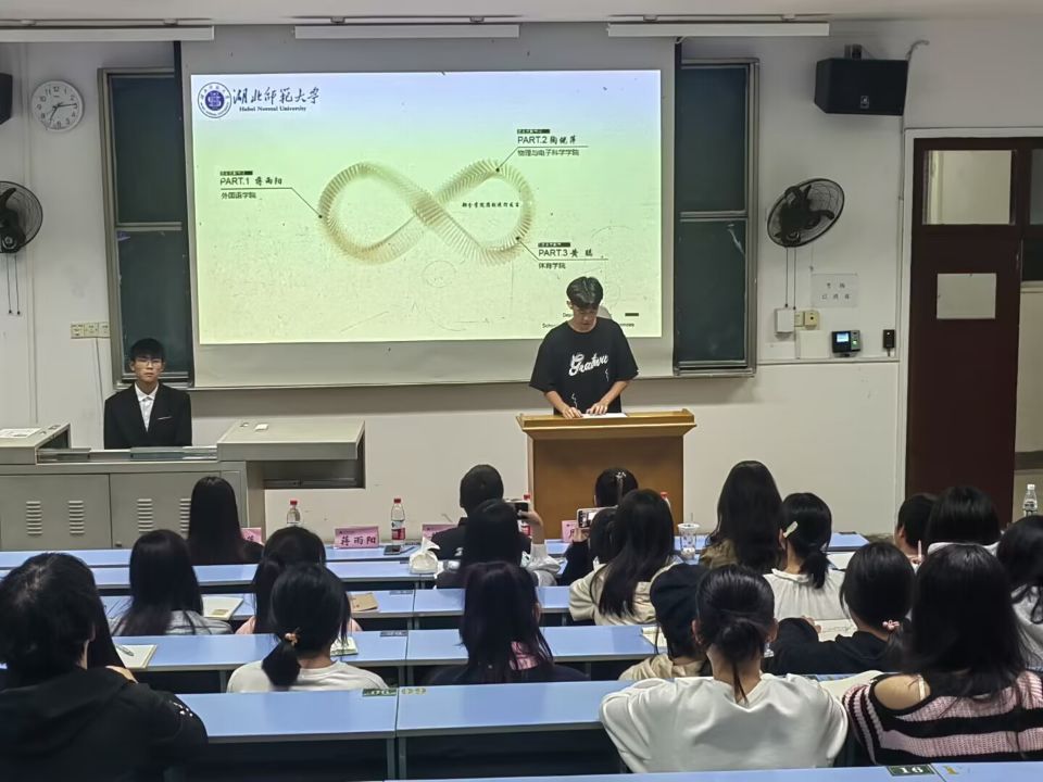 为了提高各院实践部见习干事工作技能,促进部门之间友好交流与合作,由物理与电子科学学院、体育学院、外国语学院主办,公司及城市与环境学院、电气工程与自动化学院、数学与统计学院、生命科学学院和化学化工学院协办的九院联合培训干事见面会于2022年11月1日晚在教育大楼1J33正式开展。会议由物理与电子技术学院实践部主持,外国语学院团总支副书记蒋雨阳、物理与电子科学学院团总支副书记陶倪萍、体育学院团总支副书记黄聪、校团委实践部负责人周祉涵出席本次会议,九院实践部代表及见习干事参加此次活动。