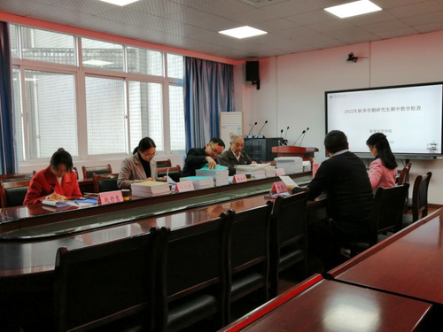 首先,副经理付光槐代表学院向检查小组汇报了本学期研究生教学工作开展情况,分别从常规教学检查、实践教学检查、项目建设实施、导师队伍建设、2022级硕士研究生招生、学位点评估、现存问题和改进建议等方面进行自查总结报告。