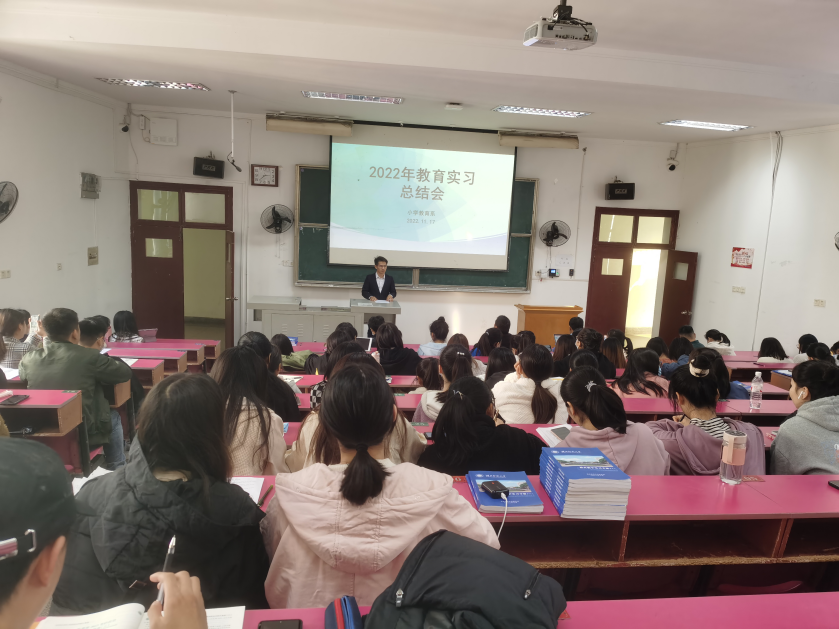 2022年11月17日,小学教育系在教育大楼1J22举行教育实习总结会。会议由系主任周英杰主持,崔波副经理、刘学利副教授、郭文毅老师、朱培芳老师和全体在校实习生参加了本次会议。