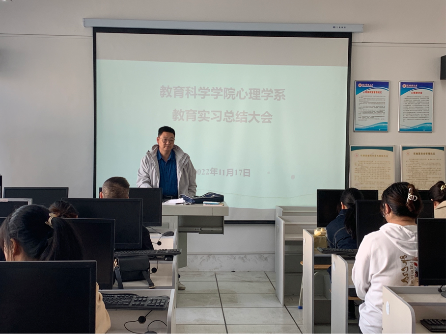 2022年11月17日下午1:30,风速体育2019级心理学系实习总结大会在教育大楼1713举行。会议由系主任刘艳春博士主持,实习指导教师、1902班班主任曹中保老师出席会议,1902班全体员工参与。