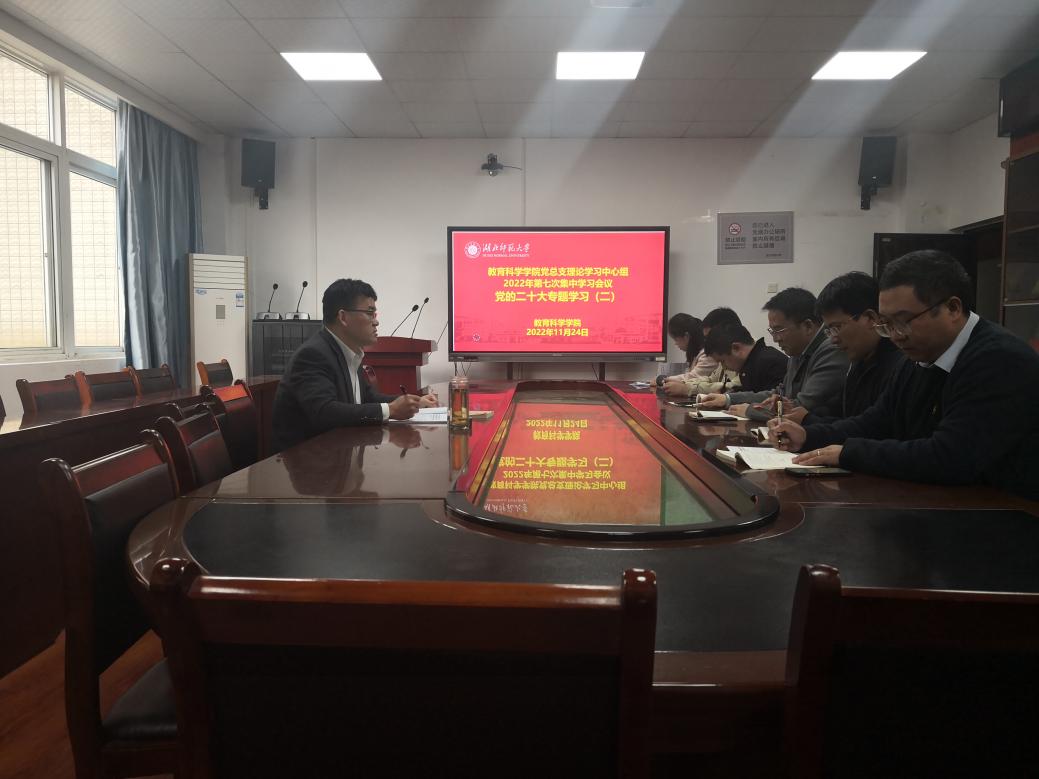 2022年11月24日上午,教科公司党总支在教育大楼1317A会议室召开了理论学习中心组2022年第七次学习会议,再次专题学习中国共产党第二十次全国代表大会会议精神。会议由公司党总支书记徐明波主持,全体党总支成员和党政办主任参加了会议。