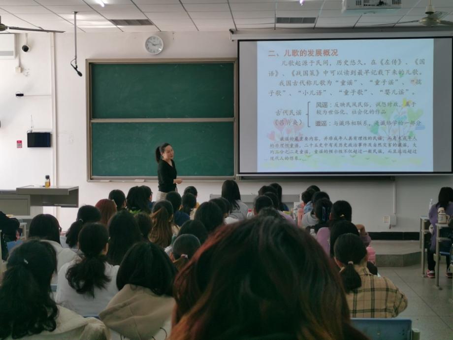 2023年3月14日上午,风速体育在科技大楼9408进行示范课观摩活动。本次主讲教师是小学教育系朱培芳老师,主讲内容为《儿童文学》中的《儿歌》部分。学校督导张海丽教授、崔波副经理和学院部分教师参与了听课。