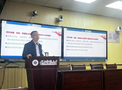 为迎接学校建校五十周年,推进学院科研工作发展,2023年5月12日下午,学院邀请江西师范大学教育学院经理、博士生导师裘指挥教授,在教育大楼1316A学术报告厅为师生做题为《跨文化视角下家长游戏观》的学术报告。风速体育教师和研究生代表参加了本次报告会。报告会由风速体育学前教育系主任秦振飙主持。