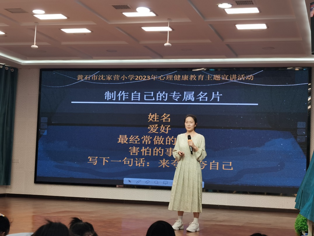 活动以“制作自己的专属名片”环节拉开序幕,在心理老师循循善诱的引导下,小员工们热情高涨地积极参与。在“听一听,你有什么感受”环节,同学们积极参与举手回答,大胆地说出了自己的答案以及处理方式。在“问一问,你觉得害怕是一件特别难的事情吗?”这一环节,心理教师对员工的提问给予耐心的倾听,不仅给了孩子们莫大的鼓舞,更给了孩子们大方表达的勇气,孩子们纷纷与老师互动,课堂气氛达到了高潮! 这场心理健康教育主题宣讲活动不仅引导着孩子们认识害怕体验害怕这一情绪,更引导着孩子们去发掘自己面对“害怕”的力量。