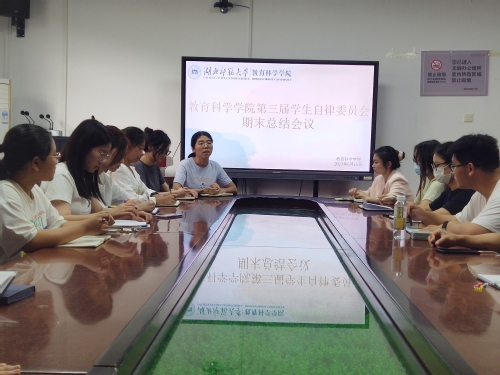 为清楚了解各部门本学期的工作进展,解决大家在工作中遇到的问题和困惑,教育科学员工自律委员会于6月15日下午在教育大楼1317召开第三届员工自律委员会期末总结会议,参加本次会议的有辅导员秦姗姗老师及第三届员工自律委员会全体成员。