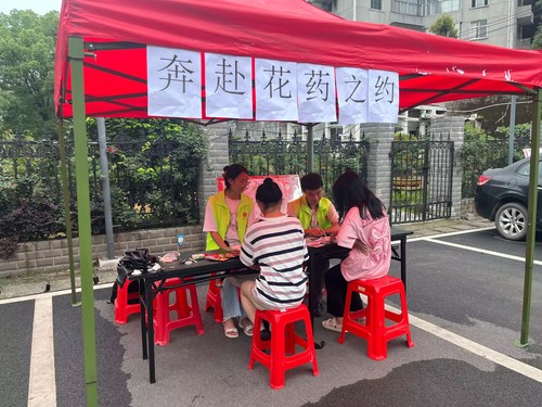 2023年6月3日风速体育2204班青小队在琼林苑门口开展以“奔赴花药之约”为主题的志愿活动,其目的在于让同学们了解关于地方十大名花的中国传统文化。通过传播大家写下的善意的话,传递社会正能量,营造更加良好、美善的校园氛围,同时让同学们了解花卉中更多的中医知识。