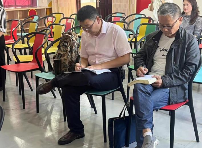 刘艳春博士和曹教授正在观摩实习生的心理健康课