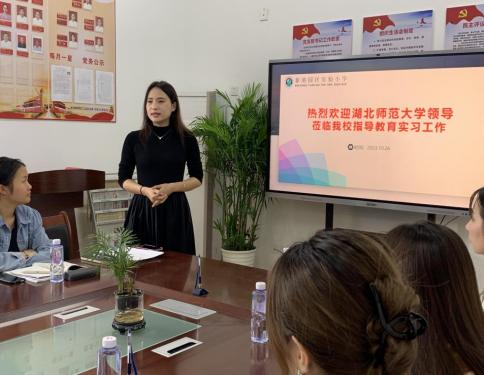 其次,实验小学指导老师代表总结汇报了实习生工作。他们谈到实习生们勤勉努力,适应能力强,能与在校员工打成一片,与指导老师及时沟通交流,高质高量地完成教学任务。