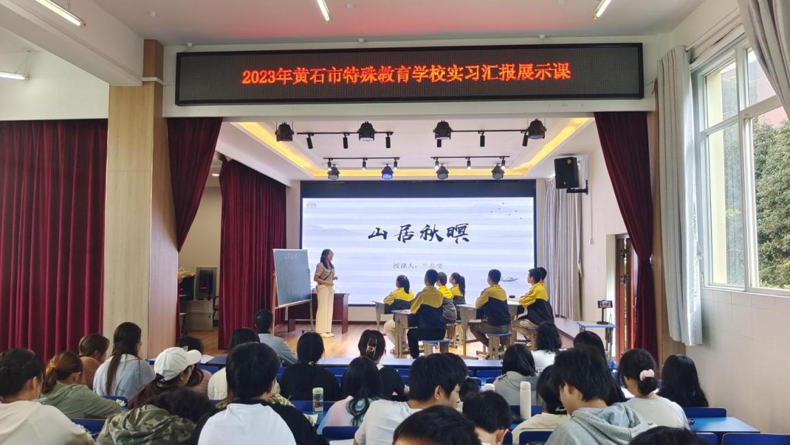 本次活动主要由四名实习生进行实习汇报课展示,课程领域涉及培智语文、培智数学和听障语文。活动过程中,同学们认真做好听课记录,并在课后对特殊教育学校课程、教学以及特殊员工的特点进行探讨,对教学过程中的优点与不足进行了评价。见习结束时,我系教师对黄石特殊教育学校为员工提供教育见习机会表达了由衷的感谢,黄石特校领导也表达了与欲与特殊教育系展开多方面的交流合作。