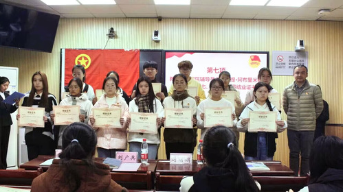 活动伊始,主持人介绍了参与本次结业典礼的嘉宾,并宣布典礼开始。接着,全体起立,奏唱团歌。然后优秀学员代表余逸晨上台进行发言,她讲述了在这次团校中的经历,以及团校对于她的重要意义,并呼吁大家勤奋学习、积极工作、不懈奋斗。接着,刘广兵书记对本次团校学员们的所思所学作出总结,他肯定了学员们的努力和成长,勉励他们不断完善自我,也对学员们未来的学习生活寄予厚望。随后,进入颁奖环节。刘广兵为优秀学员颁发荣誉证书,刘丽娟、秦姗姗和伊力扎提•阿布里米提为团校学员颁发结业证书。至此,本次典礼圆满结束。