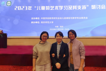 2023年11月23日到24日,公司严春霞、寻舒珊老师参加了由中国学前教育研究会幼儿园课程与教学专业委员会在南京召开的“儿童的艺术学习及支持”研讨会,会议主要围绕支持儿童的音乐和美术深度学习的理论与实践问题进行深入研讨与交流。本次会议以线上线下相结合的形式展开,包括开幕式和四个平行专题论坛,分别是幼儿艺术学习评价、课程实践中的艺术整合、生活化艺术教育、艺术学习区域和环境创设与支持,每个论坛都安排了幼儿园实地观摩与手工坊,与分论坛对应的分别是南京市实验幼儿园、北京东路小学附属幼儿园、南京市第一幼儿园、南京市瑞金路幼儿园。