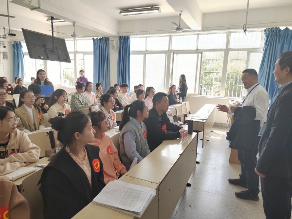 在检查过程中,雷儒金还与候场考生进行了亲切交流,鼓励考生们保持自信、冷静应对,充分展示自己的学术素养和综合能力,预祝考生们复试顺利。考生们对雷董事长的热情鼓励表示感谢并报以热烈的掌声。