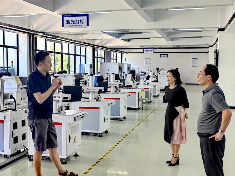 随后,调研组奔赴武汉华星的其他紧密型合作院校。分别在武汉职业技术学院光电与信息工程学院经理杨俊武和黄冈职业技术学院智能制造学院副经理金鑫的精心组织下参观了两校的光电芯片智能制造基地、集成电路虚拟仿真实训室、封装实训室、激光加工中心等一系列现代化教学设施设备,并就产教融合模式、成效和挑战开展了详细交流。
