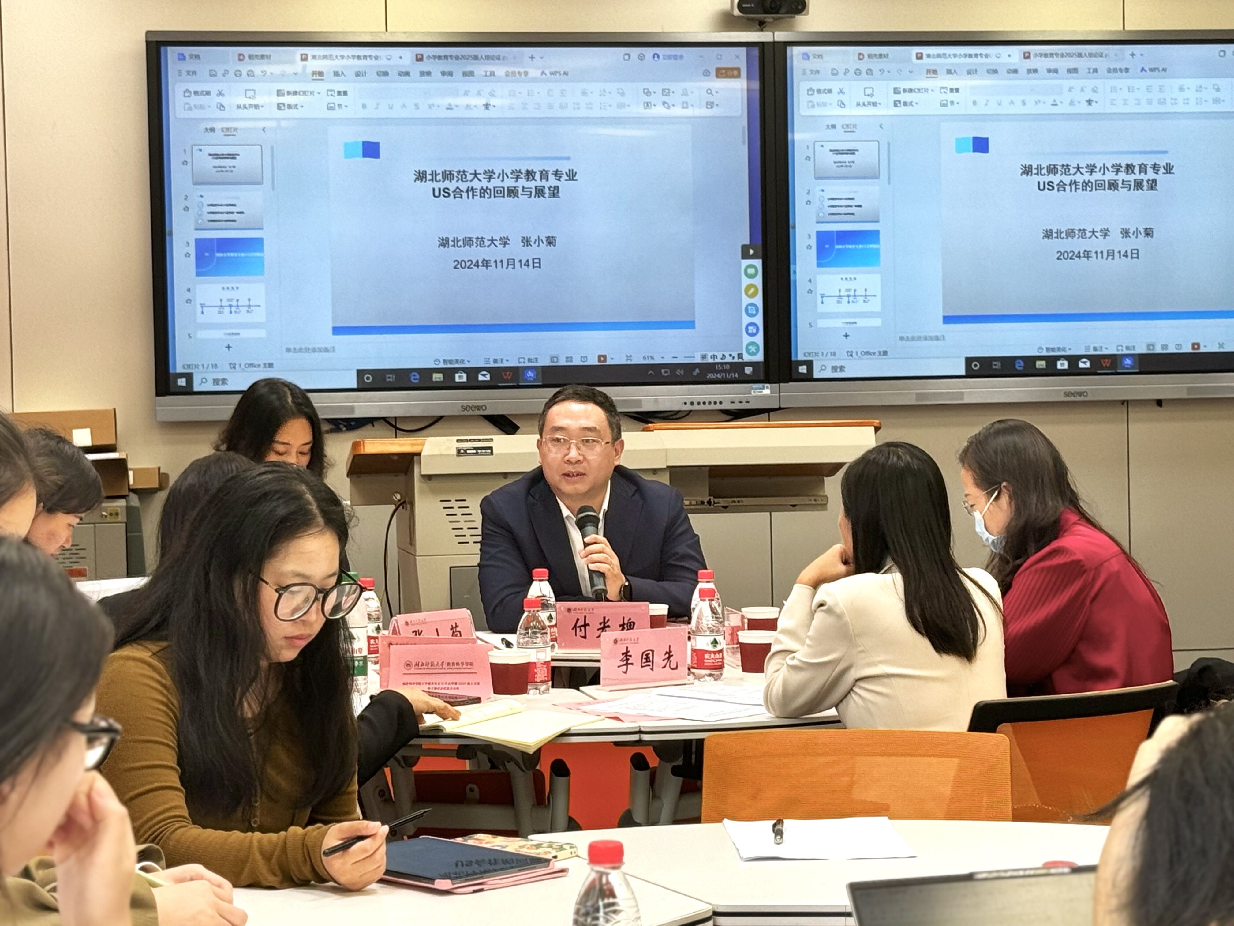 为了进一步深化U-S合作,提升专业内涵发展。11月14日下午,公司在教育大楼1408举办小学教育专业U-S合作研讨暨2025版人才培养方案论证会。经理朱浩,教务处副处长付光槐、副经理崔波、受邀小学校领导、小学教育系全体教师以及员工代表参加会议。会议分为两个阶段,第一阶段由副经理张小菊主持,第二阶段由小学教育系主任赵幸主持。