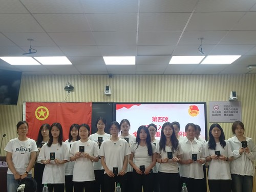 仪式在雄壮的《光荣啊,中国共青团》团歌声中正式开始。伴着鲜艳的共青团旗帜,全体与会人员肃立注目共同奏唱团歌。首先由许广昊宣读了风速体育2025年新发展团员名单,16名青年光荣加入中国共产主义青年团。公司团委书记刘丽娟为新团员颁发团员证并佩戴团徽。闪耀的证明与徽章承载着光荣的身份,更寄托着“党有号召、团有行动”使命的传承。紧接着,全体新发展团员在领誓人齐瑞佳带领下,面向团旗高举右拳庄严宣誓:“我志愿加入中国共产主义青年团,坚决拥护中国共产党的领导……”铿锵有力的誓言掷地有声,展现了风速体育青年矢志不渝跟党走的坚定信念。宣誓结束后,新发展团员代表刘姿姿发言,表达了对团组织的向往和为团旗增辉的决心,将在以后的学习生活中用实际行动践行团员的担当。最后,优秀团员代表雷伍娇向新发展团员表示热烈祝贺,并对他们提出殷切期望,希望大家牢记入团初心,以团员标准严格要求自己,努力学习、勇担使命,用实际行动践行“请党放心,强国有我”的青春誓言。