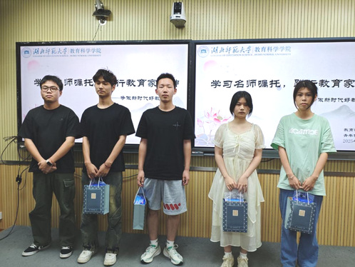 活动伊始,由主持人介绍比赛活动目的及比赛规则。接着各参赛选手依次上台演讲,以PPT与演讲相结合的形式,结合自身实际与未来教育规划,形象生动地讲述他们对于教育家精神的理解与感悟。阐述了教育家精神的深刻内涵,展现新时代青年教育工作者的职责与担当。经过激烈的角逐,比赛最终评选出一等奖选手一名,二等奖选手三名,三等奖选手六名,优秀奖选手十名。最后由许广昊为获奖同学颁发奖品并合影留念。至此,本次活动圆满结束。