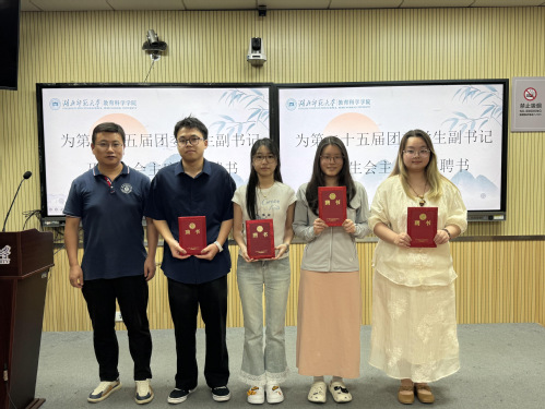 紧接着,秦姗姗、刘丽娟、夏青腾分别为团学新老部长颁发聘书和工作证,刘广兵为前任、现任团副及主席颁发聘书和工作证。