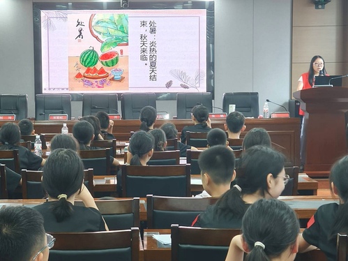 接下来,课程进入讲解环节。刘嘉琦围绕前十二个节气展开了具体讲解,从立春的万物复苏讲到夏至的骄阳似火,她结合生动的图片和通俗的语言,详细介绍了每个节气的由来、标志性物候和民间习俗,比如立春吃春卷、清明扫墓祭祖等,让孩子们了解到节气与生活的紧密联系。随后,志愿者吴珂萱接过讲解的接力棒,为孩子们介绍后十二个节气,从立秋的凉风送爽讲到大寒的冰天雪地,她着重强调了秋分的昼夜平分、冬至的数九寒天等特点,并穿插了“冬至吃饺子不冻耳朵”等趣味民俗故事,进一步加深了孩子们对节气的理解和记忆。