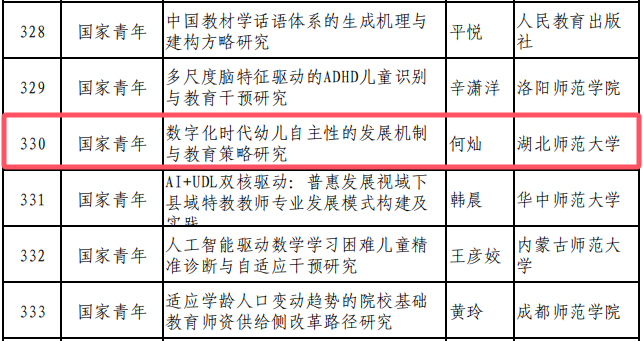 近日,全国教育科学规划领导小组办公室正式公布了2025年度全国教育科学规划项目(含专项)立项名单,公司何灿博士主持的《数字化时代幼儿自主性的发展机制与教育策略研究》课题成功获批国家青年项目。