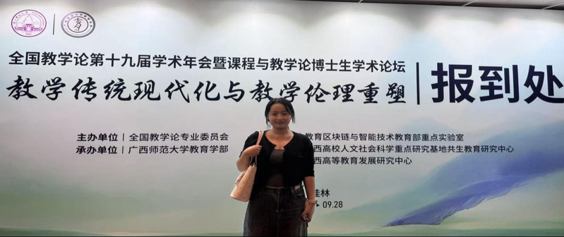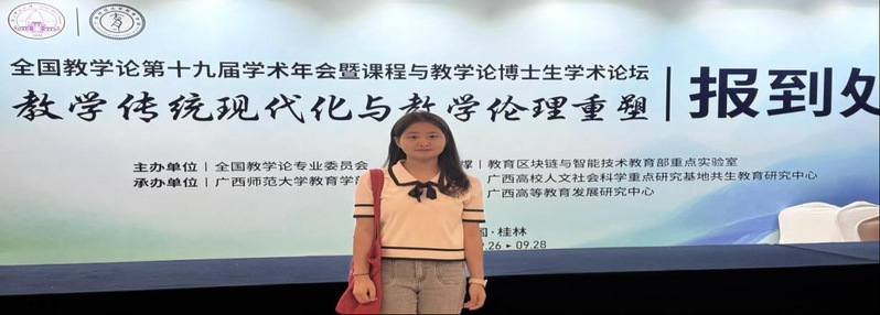 2025年9月26至28日,全国教学论第十九届学术年会暨课程教学论博士生学术论坛在广西师范大学举行。本届年会主题为“教学传统现代化与教学伦理重塑”,来自全国近500名教育专家、学者、研究生参会,公司陶丽副教授指导的课程与教学论研究生许条红、小学教育研究生张琪参与了此次学术年会。
