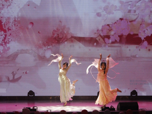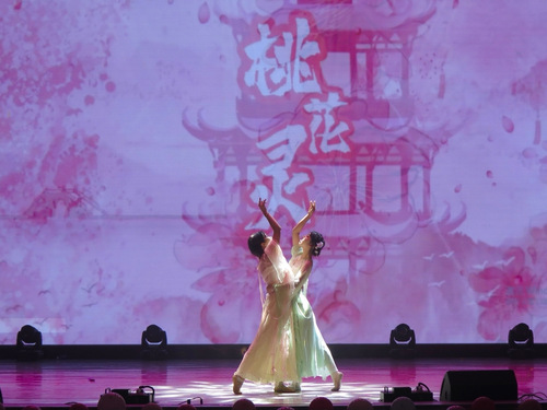 第二篇章“绽放·教苑新声”,爵士舞蹈《scream》的舞者在利落转体与爆发力十足的跳跃间,将青春张力诠释得淋漓尽致。双人对唱《素颜》“不画扮熟的眼线”的质朴歌词,将校园里的纯粹故事娓娓道来。古典舞《桃花灵》中,舞者水袖轻扬如落英缤纷,让诗意国风在舞台上静静流淌。2506班同学表演的合唱《歌曲串烧》,巧妙地将流行热曲与经典老歌融合,师生跟唱的声浪汇成了最动人的青春回响。