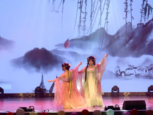 第三篇章“同行·筑梦远航”,舞蹈《Lips Hips Kiss》的舞者们踏响动感节拍,将青春热情尽情释放。双人对唱《同花顺》在深情旋律,细腻声线交织间,传递出成长路上的共鸣与力量。问渠汉服社带来的汉服走秀《华服雅韵》惊艳全场,在学子们衣袂翩跹中尽显传统文化的典雅厚重。教科院学子全体合唱《夜空中最亮的星》,嘹亮歌声里满是对未来的憧憬与并肩筑梦的期许。