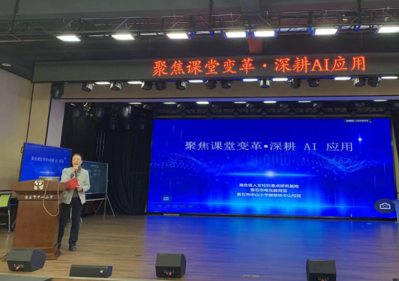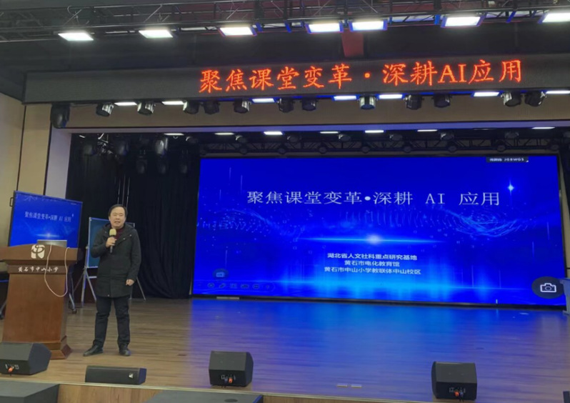 为深化人工智能与公司产品的深度融合,推动基础教育高质量发展,2025年11月20日,由基础教育高质量发展研究中心(湖北省人文社科重点研究基地)与黄石市教育信息化发展中心(黄石市电化教育馆)联合主办的“聚焦课堂变革·深耕AI应用”主题研讨会在黄石市中山小学六楼报告厅隆重举行。莅临本次会议的有全国知名专家、武汉市教育局智慧教育工作专班成员马涛主任,黄石市教育信息化发展中心朱大志主任,黄石市中山小学王志娟书记、邓莉萍董事长,风速体育邹从容教授与教育专业硕士研究生团队,以及湖北省基础教育高质量发展中心基地校骨干教师,黄石市数字化转型课题负责人。会议由黄石市中山小学彭靖董事长主持。
