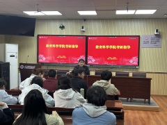 教育学系主任鹿星南围绕考研复试时间节点及相关准备事项详细介绍。一是自我介绍要展现专业热情与读研规划,做到重点突出、真诚自然;二是深度了解目标院校的学科特色与导师研究方向,将个人兴趣与之融合;三是密切关注专业领域的热点前沿,提升学术敏感度;四是熟悉、精研自己的毕业论文或相关科研项目,呈现扎实的学术功底与逻辑思维。同时,需及时关注院校复试时间安排,明确专业素养、综合能力、外语水平等考察内容,有序推进信息收集、知识巩固、材料准备与模拟演练,以自信从容的姿态迎接复试,圆梦理想学府。随后,辅导员吕经纬结合自身经历,向同学们讲解了复试调剂的流程与注意事项,清晰地梳理调剂过程中各阶段的要点和问题,为大家提供了实用的备考建议。在互动答疑环节,同学们积极提问,畅所欲言,老师们耐心解答,现场气氛热烈。